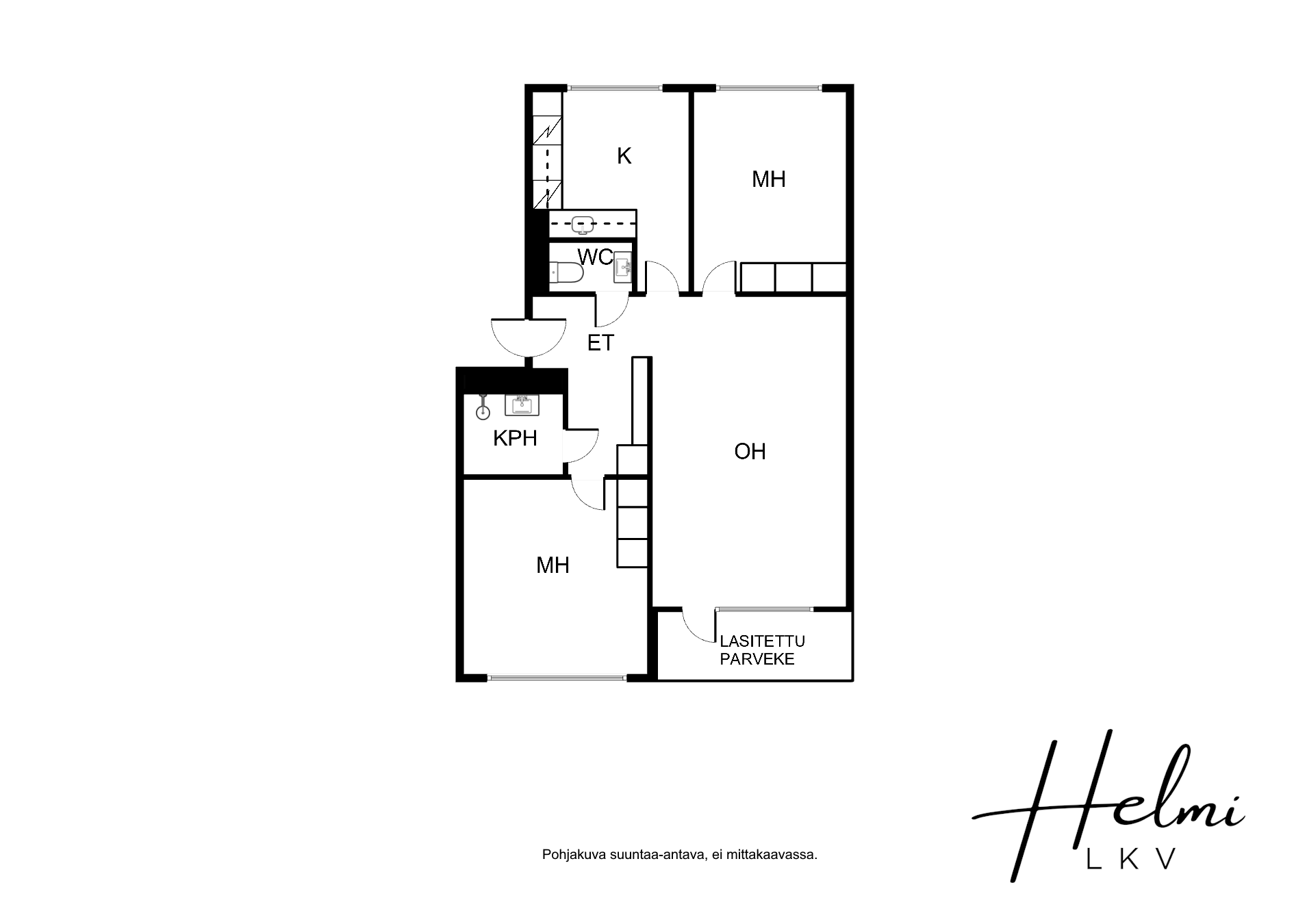 Tässä kodissa on kaksi tilavaa makuuhuonetta, joissa molemmissa on hyvin säilytystilaa. Huoneistosta löytyy myös valoisa olohuone, josta on käynti lasitetulle parvekkeelle, keittiö, johon mahtuu pieni ruokailuryhmä, kylpyhuone pesukoneliitännällä ja erillinen wc.